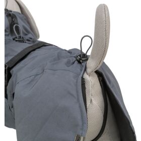 taglio largo per offrire maggiore protezione alle zampe posteriori e per garantire maggiore libertà di movimento e nella zona delle spalle
